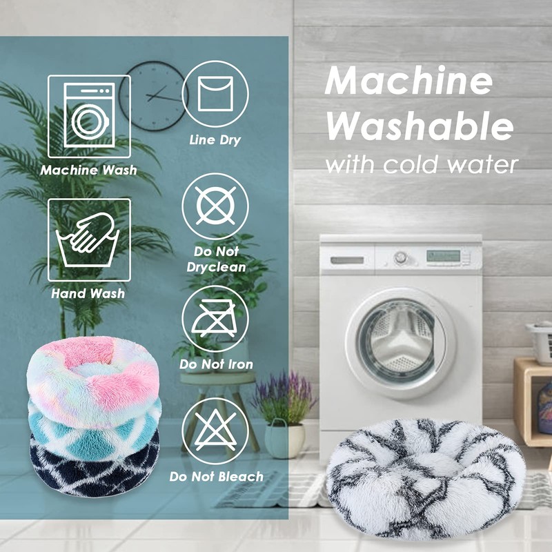 Machine washable, the pet bed has a 4cm fluff length, a gentle cycle in the washing machine, direct low heat drying, wait 24-48 hours to restore the original fluffy and soft look