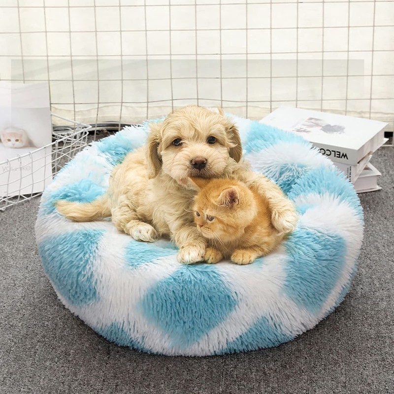 - đăBetter and more comfortable sleepăThe self calming dog bed with round donuts with colorful pockets is cute and warm, giving people a sense of happiness. Cat Bed The adorable pet bed features a raised edge for the pet's head and neck, providing relief for dogs and cats with joint pain or arthritis. Super soft donut shaped pet bed helps pick up pets faster and sleep well
