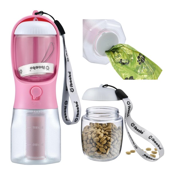 Cibaabo Dog Water Bottle with Food Container & Poop Bag Holder, Travel Water Bowl, Portable Pet Dispenser, Dog Stuff Accessories Items, Puppy Essentials Necessities for Yorkie Chihuahua Walking Hiking