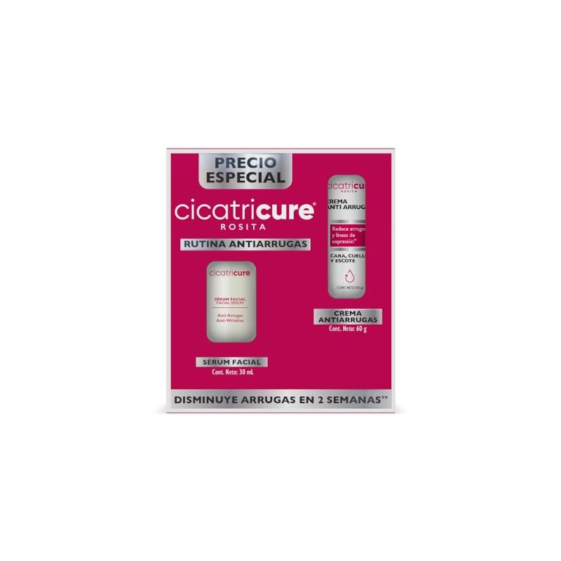 🌟 ⭐ CICATRICURE KIT Rosita, Sérum Facial 30ml + Crema antiarrugas 60g, Rutina Antiarrugas que disminuye arrugas y líneas de expresión en 2 semanas ⭐ 🌟