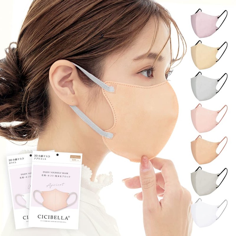 cicibella マスク バイカラーマスク 不織布 立体 バイカラー 3dマスク ふしょくふ マスク 冷感マスク 小顔 おしゃれ 立体マスク 小さめ 耳が痛くならない 肌に優しい 20枚 使い捨て カラーマスク アプリコット×紐グレー