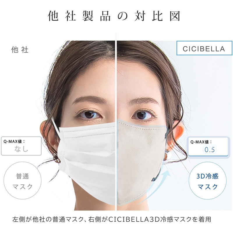 cicibella 冷感マスク 44枚 3D不織布 接触冷感 立体マスク 使い捨て 冷感不織布マスク 小顔 不織布マスク ダイヤモンドマスク 口紅が付きにくい バイカラー hanami【7】ラベンダー×紐レッド
