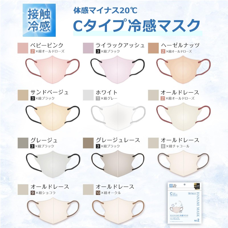 - マスクと耳ひもがバイカラーの3Dマスクなので、ファッション性と機能性に優れたマスクです。お好みに合わせて、自由に組合わせを選べます。