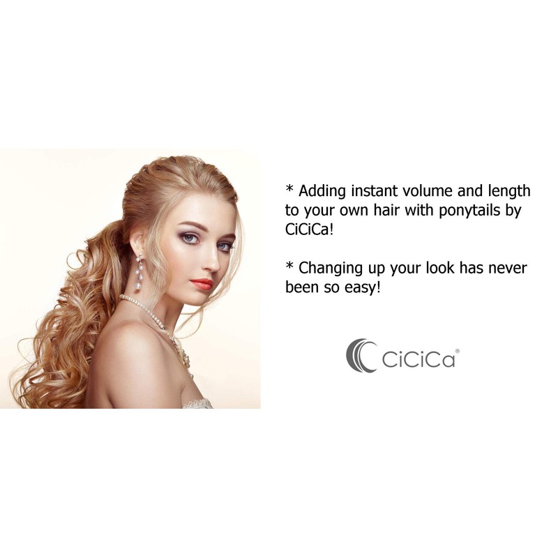 CiCiCa Long Ponytail Extension with Jaw/Claw Clip and Drawstring, 20 Inches Loose Body Curly Wave Drawstring Ponytail, Mixed Bleach Blonde Honey Hair Extensions Heat-Resistant Synthetic in for Women.