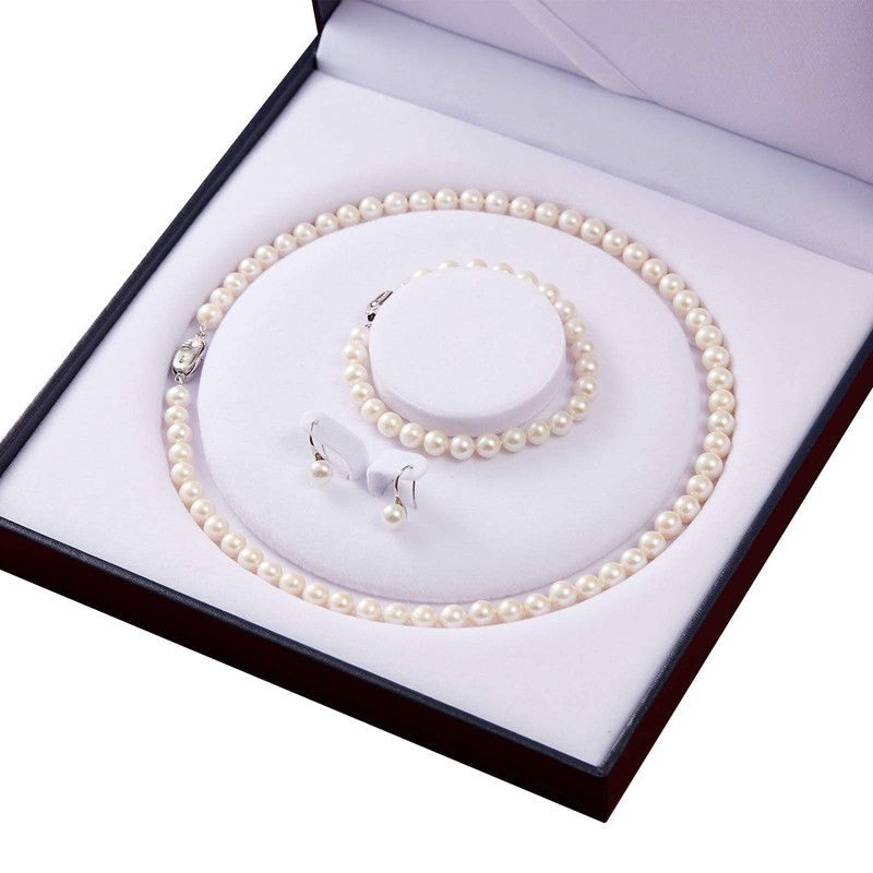 CICILIYA Freshwater Pearl Strand Necklace Set Include Bracelet and Dangle Earrings in Leather Gift Box for Women