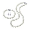 - đ·ăSize Guideă: Three-piece set: bracelets, necklace and dangle earrings. Necklace: 18 inch; Bracelet: 8 inch; Pearl diameter: 7.5-8.5mm. ïŒThere may be an error in size, no more than half a pearlïŒ925 sterling silver 18k gold plated pea clasp, which is different from the lobster clasp commonly used in the market.