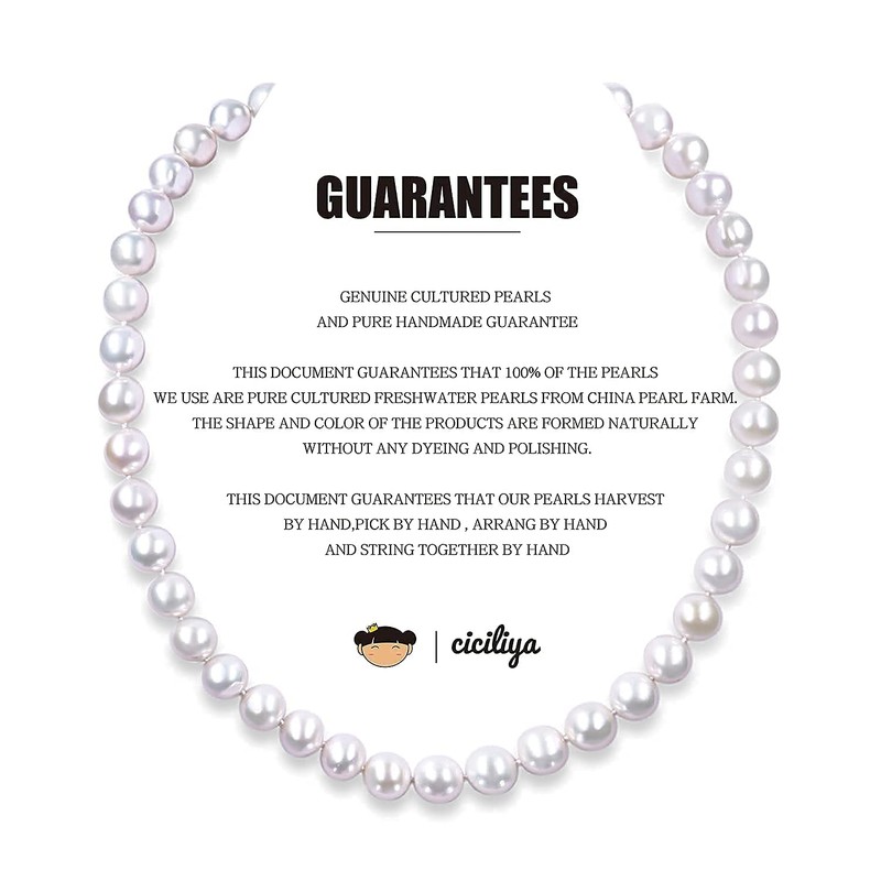 - đ·ăReal Pearlă: Our pearls are purely cultured freshwater pearls. The pearl's shape and color are naturally formed, without any dyeing or polishing. Each bead is full and even, crystal clear, elegant and charming.CICILIYA Pearl focuses on freshwater pearl jewelry. The freshwater pearls used come from the largestsource of freshwater pearls in China. The area produces 75% of the global pearl production every year.