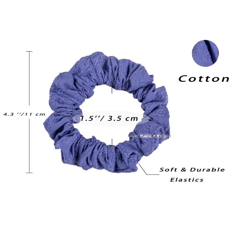Cicimeiluody - Cotton Embroidered Scrunchies for Women - Regular and Petite Sizes - Soft, Hair-Friendly Durable - Perfect for Thin and Thick Hair (2Violet)