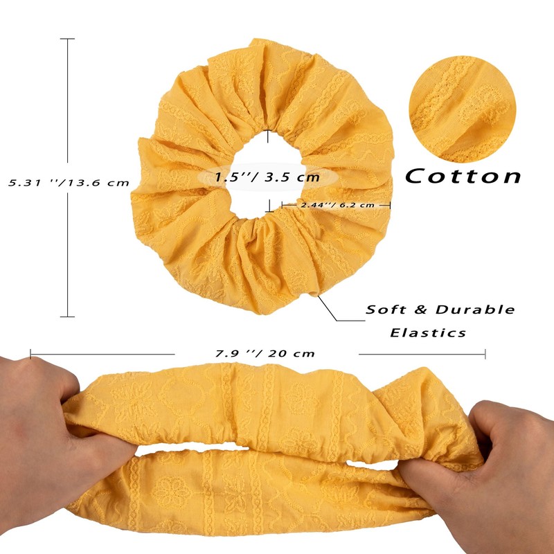 Cicimeiluody - Cotton Embroidered Scrunchies for Women - Standard and Mini Sizes - Soft, Hair-Friendly Durable - Perfect for Thin and Thick Hair (2-Yellow, Large)