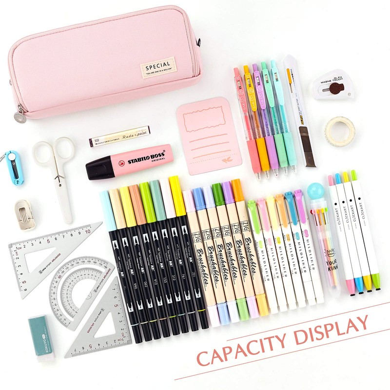 CICIMELON Large Capacity Pencil Case 3 Compartment Pouch Pen Bag for School Teen Girl Boy Men Women (Pink)