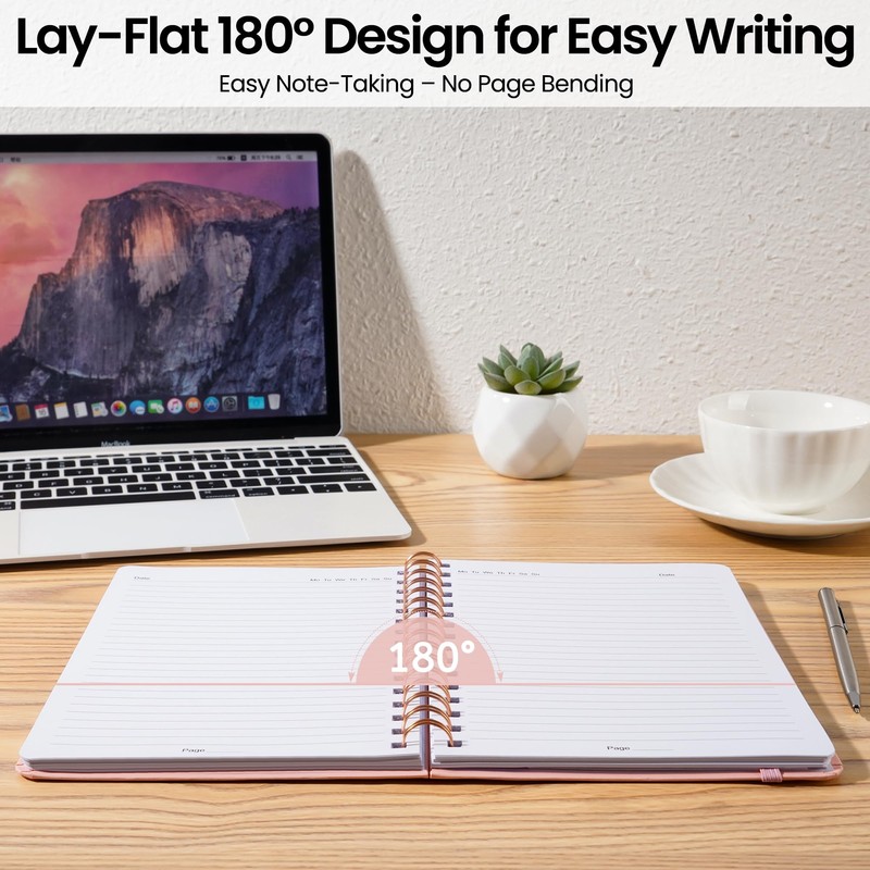 CICPAP Lined Spiral Journal Notebook, A5 College Ruled Notebook for Journaling, Note-Taking, and Daily Planning, Durable Hardcover with an Elegant Design, Pink
