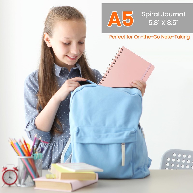 - HARDCOVER SPIRAL JOURNAL: This medium 5.9 x 8.5-inch spiral notebook features a durable hardcover that provides excellent protection and a professional look. It includes an elastic closure band to keep your notes secure and an inner expandable pocket for storing loose papers or small essentials. With 140 pages of high-quality paper, it’s perfect for journaling, note-taking, or daily planning.
