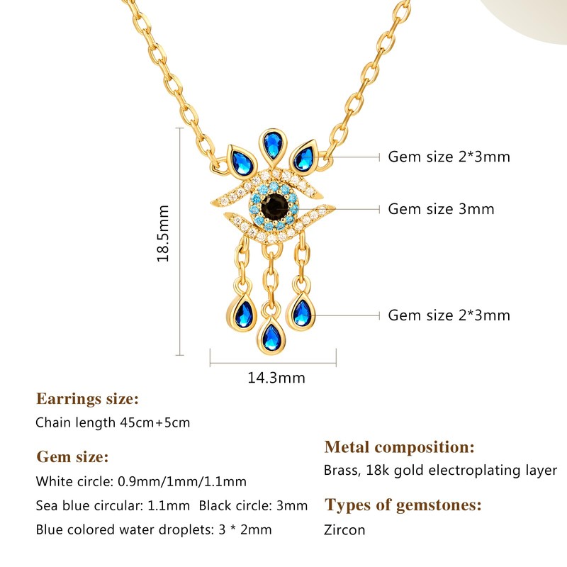 - Features: This necklace features an evil eye design and is adorned with cubic zirconia; The zirconia comes in a variety of colors, creating a layered look that is very unique and exquisite, highlighting your personality