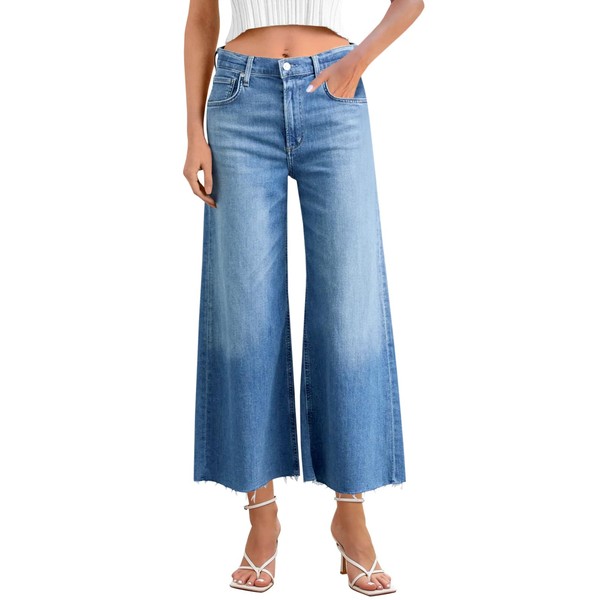 Cicy Bell Womens Cropped Wide Leg Jeans High Waisted Stretchy Flare Jeans Boyfriend Baggy Ankle Denim Pants with Pockets Blue