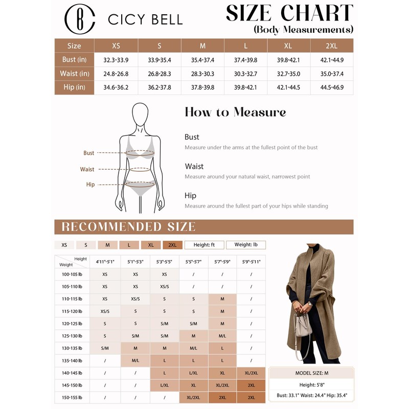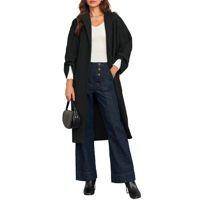 Cicy Bell Womens Long Pea Coats Oversized Wrap Wool Blend Trench Coats Winter Open Front Cardigan Overcoats