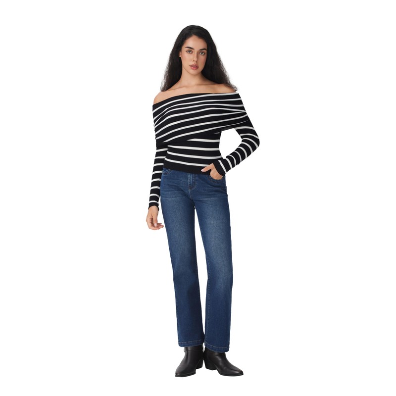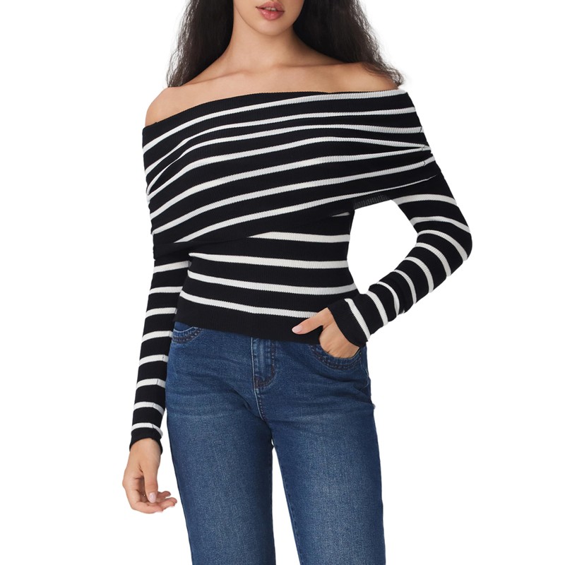 - Sexy Off-Shoulder Design: Features a pull-on closure with ribbed neckline for effortless wear. Bold black-and-white stripes create a slimming effect, while the exposed shoulder silhouette adds flirty charm. Long sleeves with ribbed cuffs balance allure and comfort.