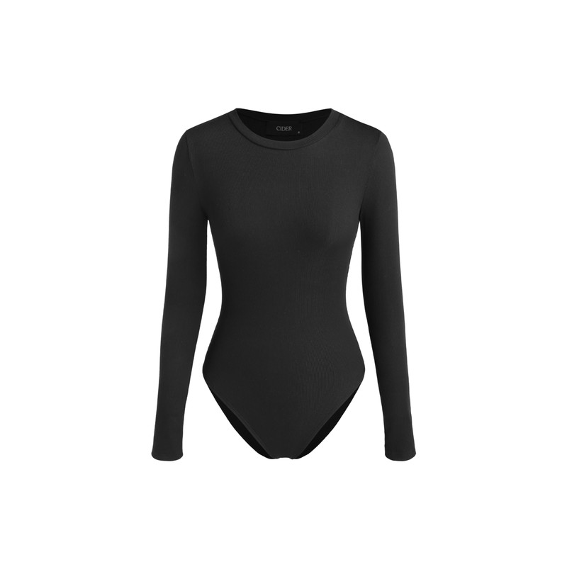 CIDER Women's Round Neckline Long Sleeve Bodysuit: Black, Medium