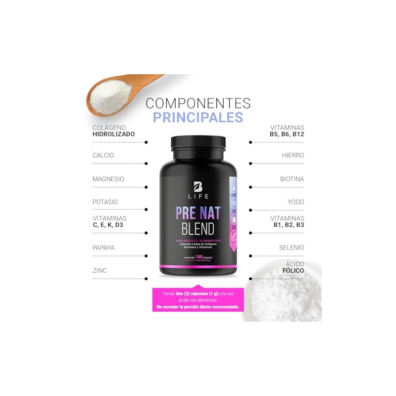 B Life Company - Ácido Fólico, Calcio, Vitaminas, Colágeno Hidrolizado, Magnesio. Multivitamínico para Maternidad. 180 Cápsulas. Pre Nat Blend B Life. ⭐ Calidad premium certificada con excelentes reseñas. Construcción robusta y atención al detalle. 🎯 Producto más buscado del mes. Ideal para quienes buscan lo mejor en calidad y estilo. Producto auténtico con satisfacción total asegurada. ¡No te quedes sin el tuyo y aprovecha esta oportunidad única!