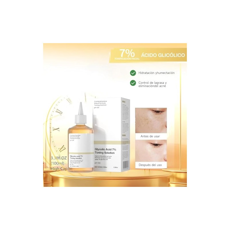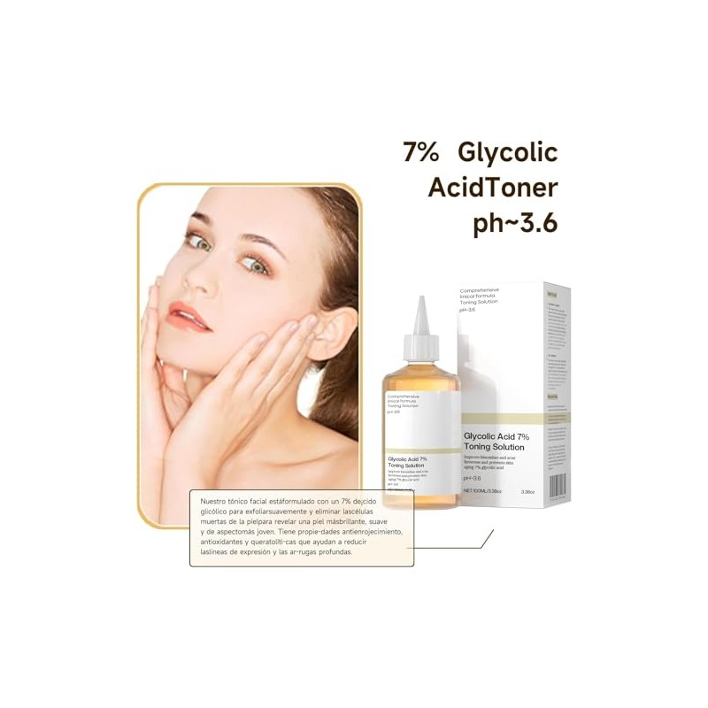 cido Gliclico 7 Toning Solucin 100ML Exfolia Rejuvenecimiento Tonificante Para Manchas Y Acn - Acid glicolico tnico reafirmante tonificante y facial