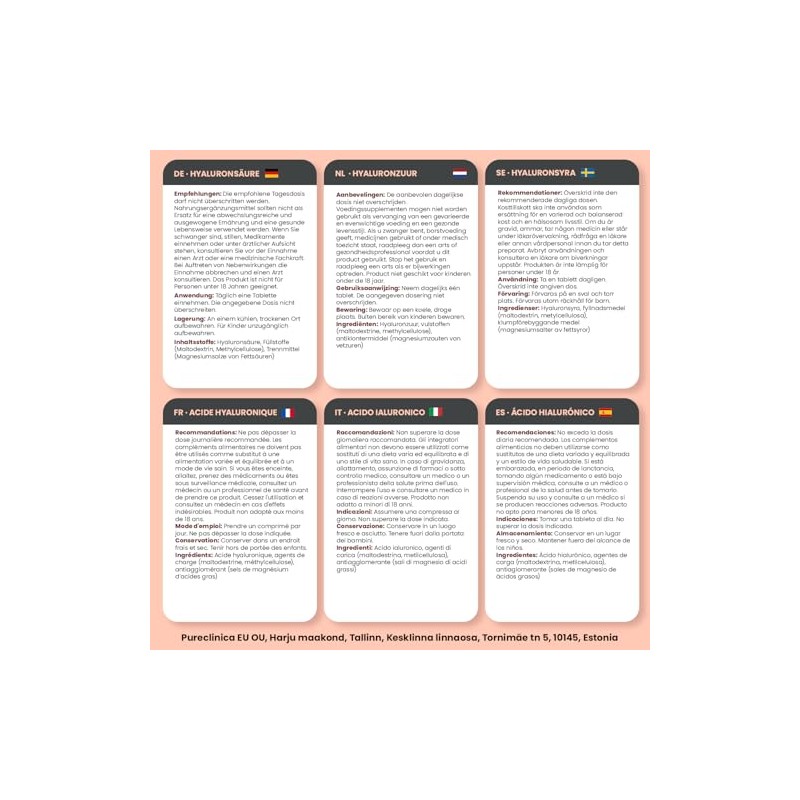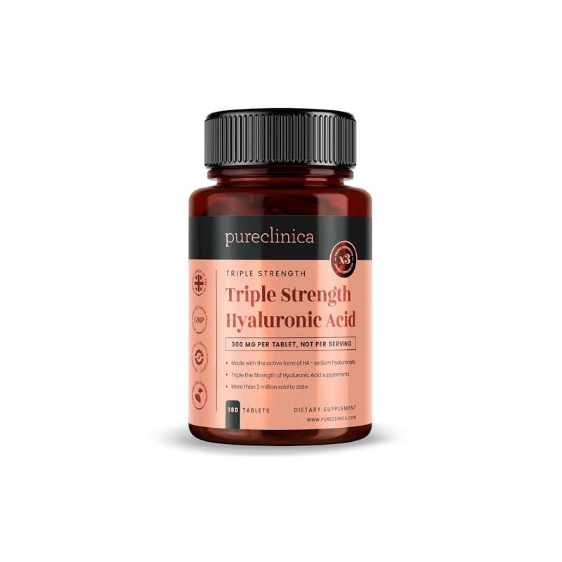 pureclinica - ácido Hialurónico 0.01 onzas x 180 comprimidos (3 meses de suministro) ácido hialurónico con triple fuerza 300 % más fuerte que cualquier otro comprimido de ácido hialurónico SKU: HLA3