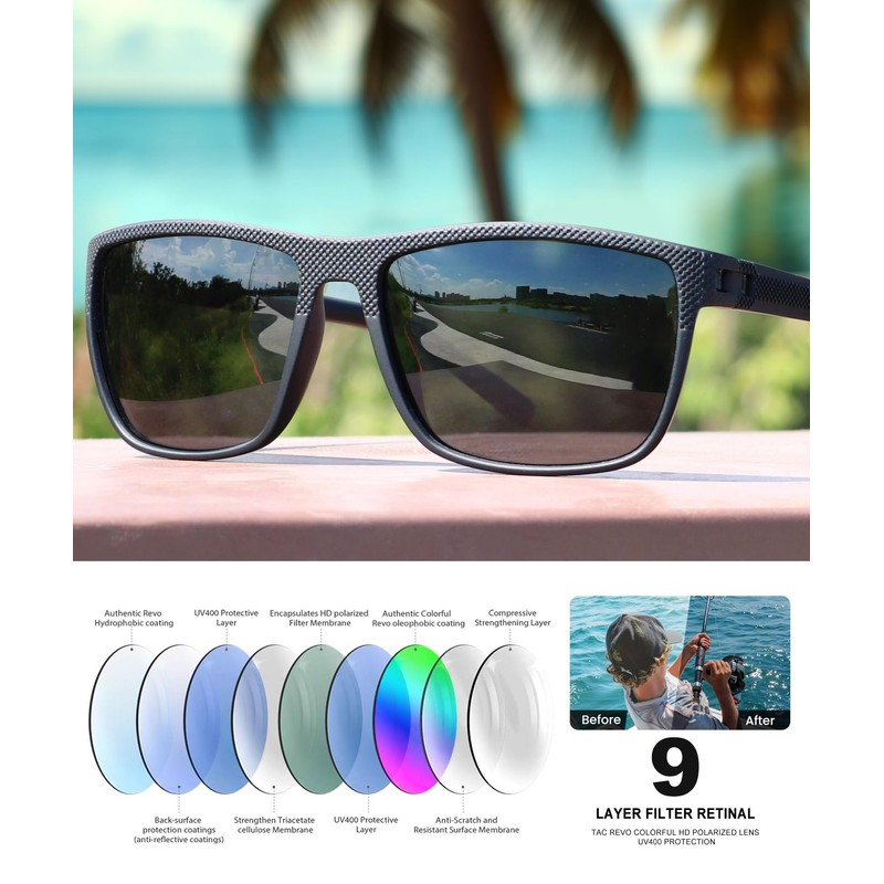 - 🚗 UV Protection And Polarized HD Vision Lens 🕶 This Cool Sunglasses Can Be Worn All Year Round.UV400 Protective Coating, Blocking Harmful UVA And UVB Rays. HD Lenses Bring You A Natural And Clear Field Of Vision, Always Keeping Your Eyes Healthy. This UV400 Sunglasses Are Necessary To Protect Your Eyes From Long-Term UV Damage And Keep Your Eyes Healthy During Leisure Activities.