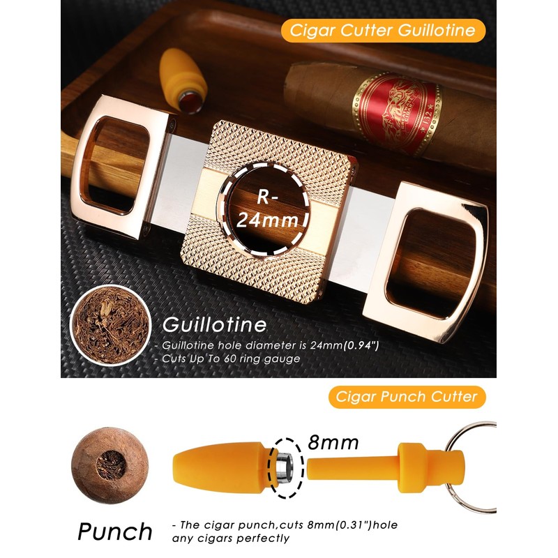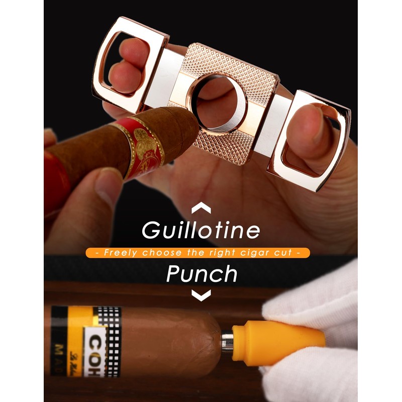 - WHAT YOU GET- 1 x Cigar Cutter, 1 x Cigar Punch(Plastic Shell), 1 x Luxury Gift Box, suitable As a Gift for Birthdays, Father's Day, Valentine's Day, Anniversary, Christmas, Thanksgiving.