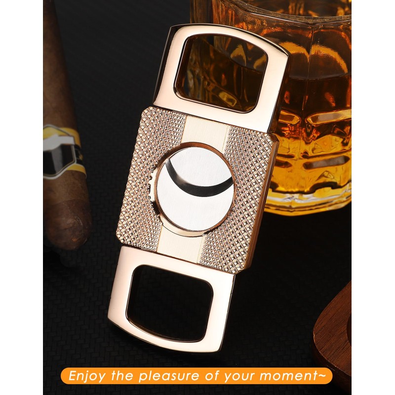 - SOLID METAL Double BLADE- 100% Solid zinc aluminum alloy cut blades cigar cutter. With polished and smooth finished cutting edge. This cigar cutter get sharp blades, cuts neatly and clean.