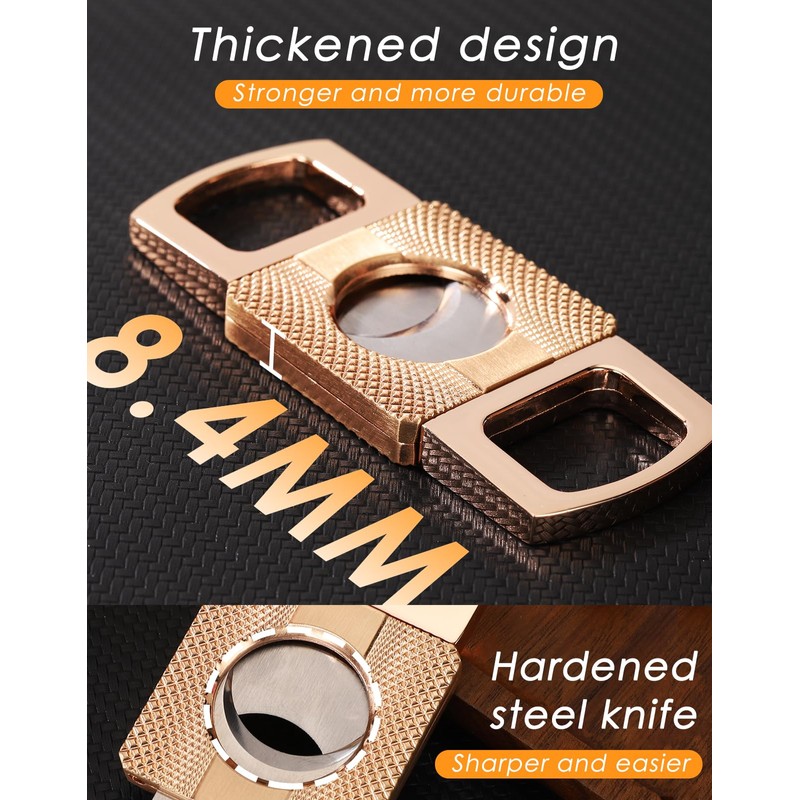 Cigar Cutter, Cigar Scissors Cast from Zinc Aluminum Alloy, Exquisite Texture Design & Double Blade for a Precise Perfect Cut, Cigar Accessories Include A Cigar Punch for Men with Gift Box(Rose Gold)