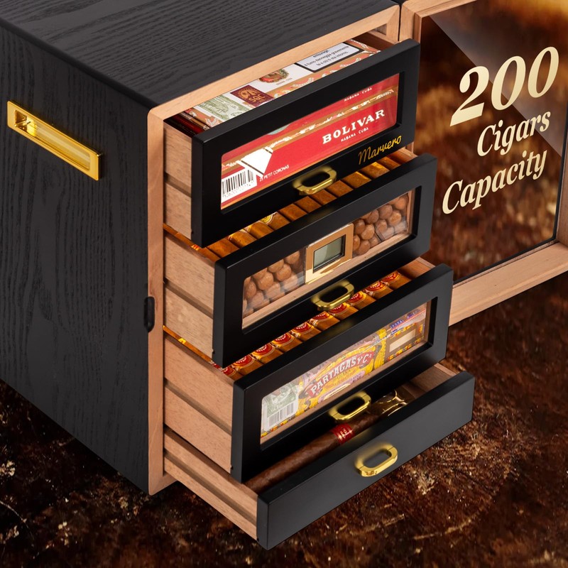 - 【200 CAPACITY】: The Cigar Humidors provides 5 movable cedar drawers with handles. Each drawer is fits for most electric cigar humidifiers. Allowing Cigar Aficionados to reserve their chosen Cigars or Accessories conveniently