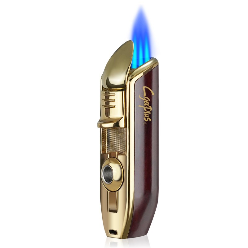 • TORCH CIGAR LIGHTER: Adjustable triple jet flames for an even burn with safety cover cap that automatically opens when lighting.