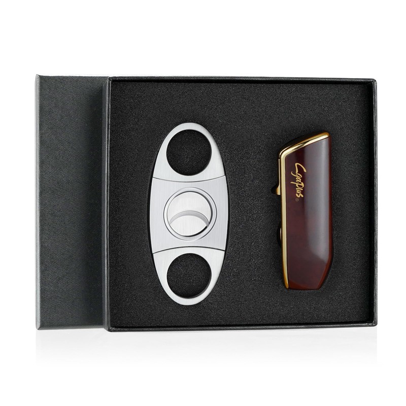 - Torch cigar lighter: Adjustable triple jet flames for an even burn with safety cover cap that automatically opens when lighting.
