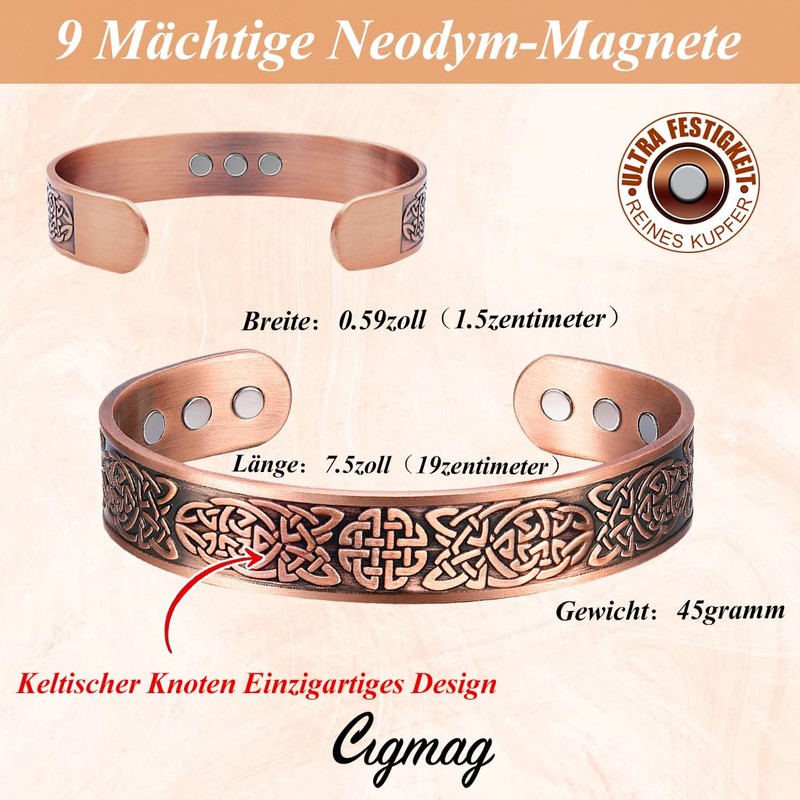 Cigmag Copper Bracelet Men 9 Ultra Strong Magnets 99% Pure Copper Adjustable with Gift Box (Celtic Knot)