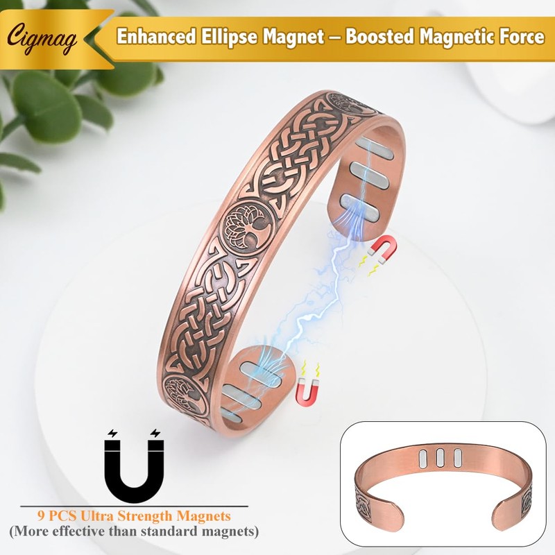 Cigmag Copper Magnetic Bracelet for Men, with Powerful Magnetic 9X 5000 Gauss Magnets, Adjustable Solid Pure Copper (Lotus Life Tree) |