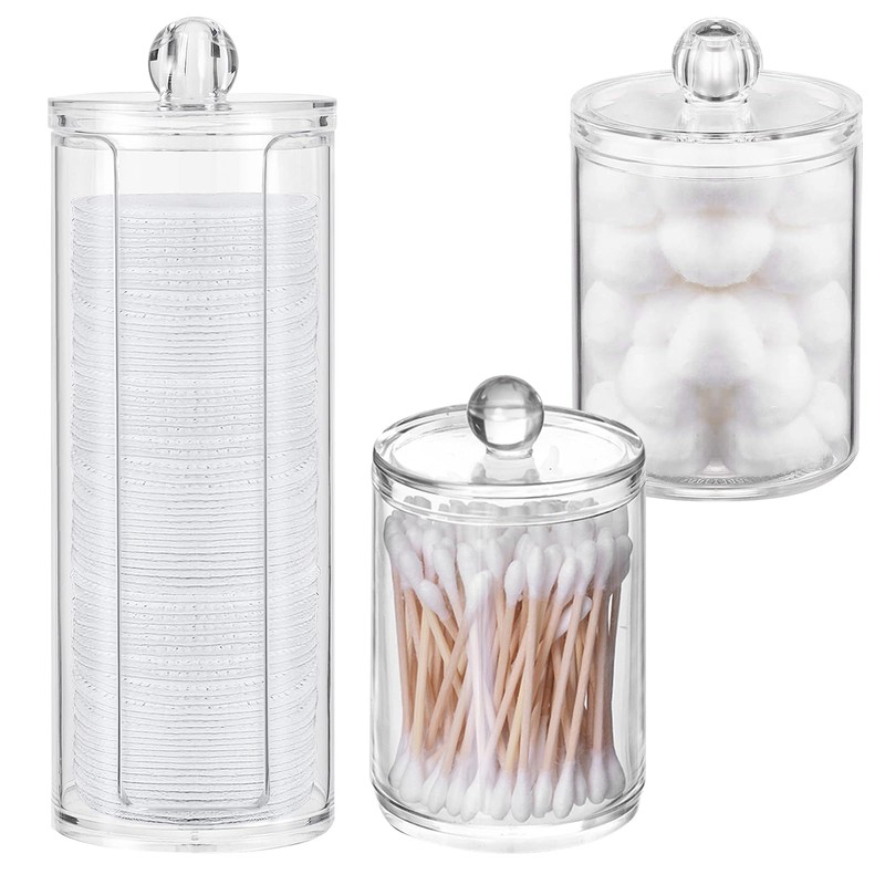 Cigrubo 3 Stk Schminktisch Zubehör, Wattestäbchen Behälter Spender, Wattepadspender Transparente, Wattepads Ohrenstäbchen Aufbewahrung, Kosmetik Organizer für Badezimmer Schlafzimmer