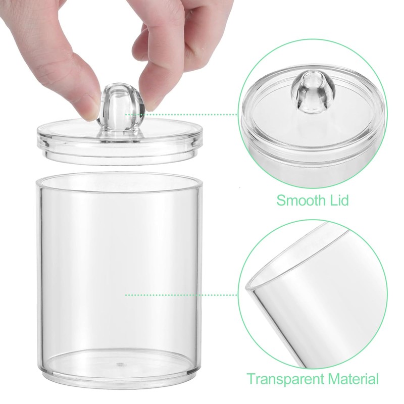 - 【Einfach zu verwenden】 Die wattestäbchen behälter hat eine praktische U-förmige Öffnung, durch die Sie die Wattepads leicht herausnehmen können, was sehr praktisch zu verwenden ist. Die Flaschenöffnung hat ein stapelbares Design und Sie können die wattepadspender nach Belieben stapeln.