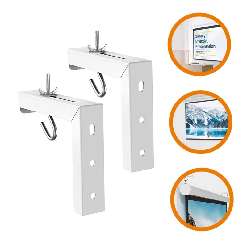 - With simple appearance style and smooth finish, and these projector screen brackets are very easy to use and install wall mount projector screen hook.