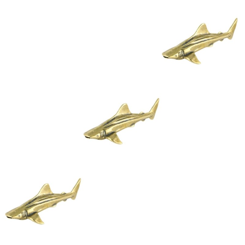 Ciieeo 3pcs Brass Craft Shark Decor Shark Shaped Desktop Decoration Wall Art for Home