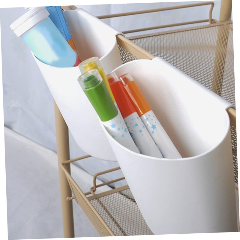 - Rolling cart cups: hanging over the edge of a rolling cart, trolley, shelf or shelf for additional storage. the bucket has a flat bottom and can be placed on a tabletop.