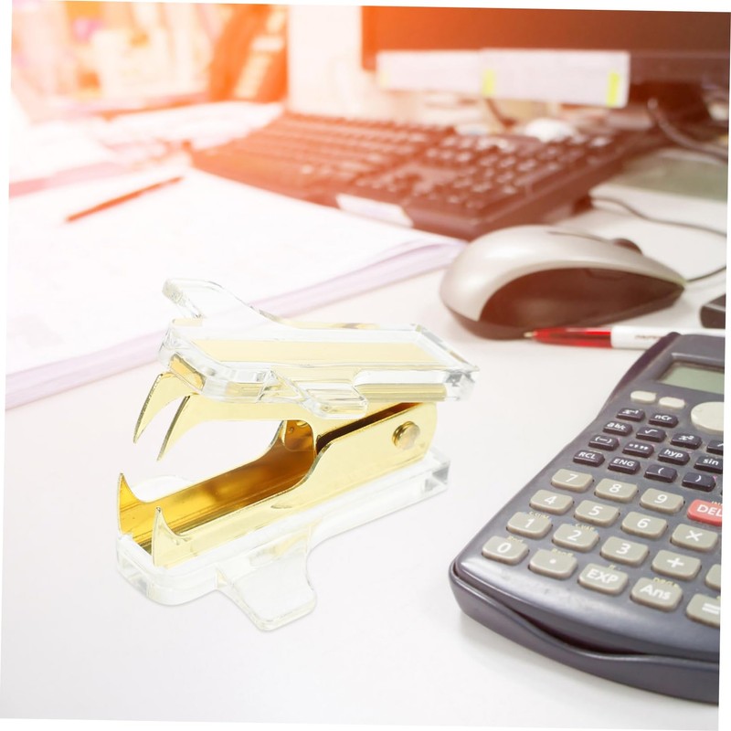 Portable staple remover. The product is a practical staple remover made of acrylic and metal material and is mainly used for quickly removing a staple from a material without causing damage. Paper clip remover. The staple remover can save you a lot of time. Small staple puller with portable design and easy operation, is really a wonderful device for your