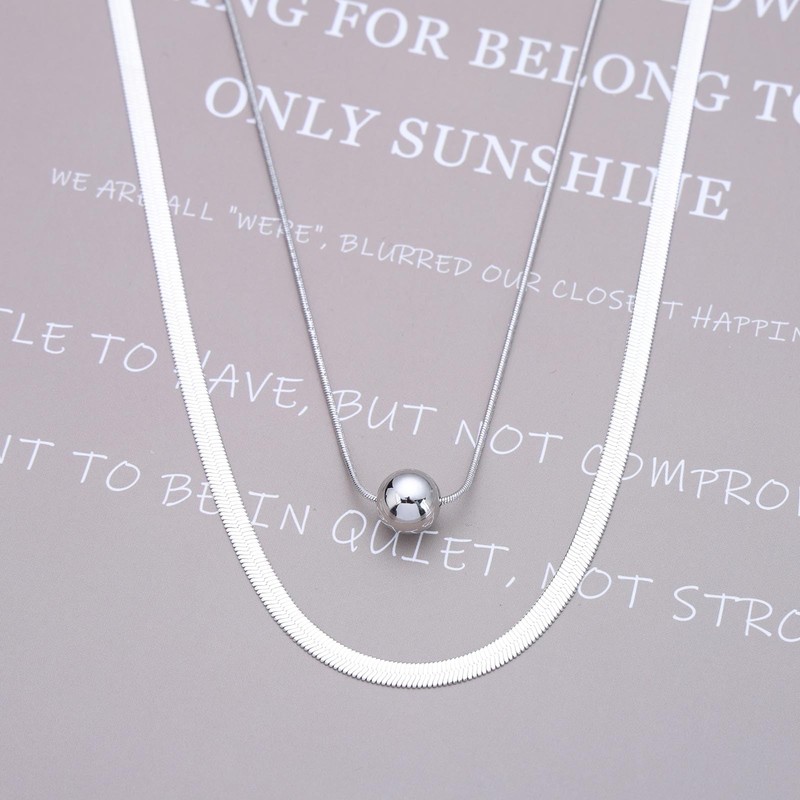 Cimenexe Bohemian Layered Snake Chain Necklace Silver Metal Bead Pendant Necklace Flat Herringbone Chain Choker Necklace Round Ball Sleek Chain Necklace Jewelry for Women