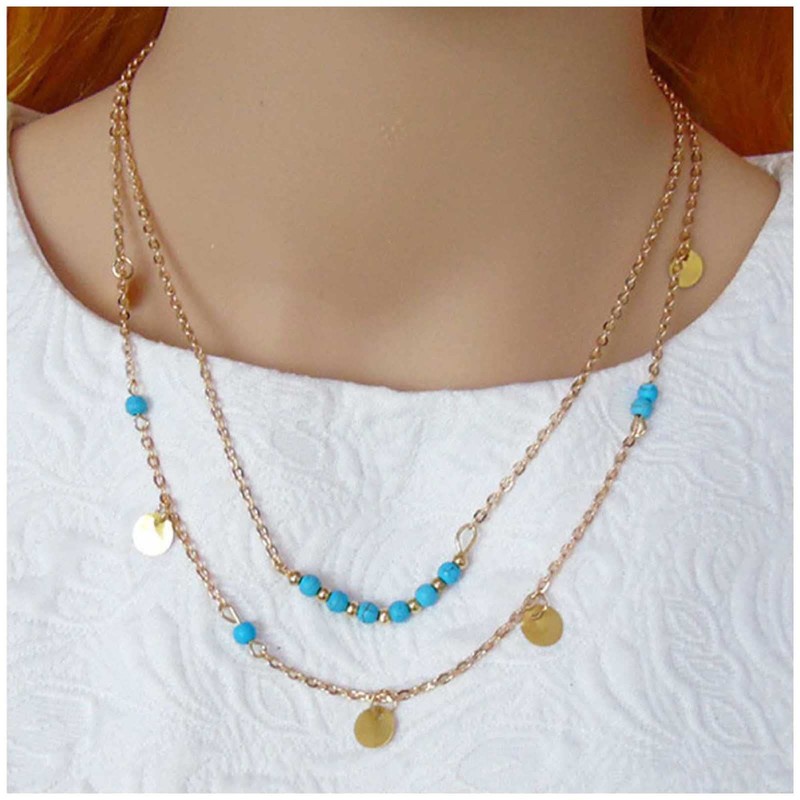- Layered turquoise necklace made of high quality alloy and natural stone. It can perfectly demonstrate the charm of the female collarbone.