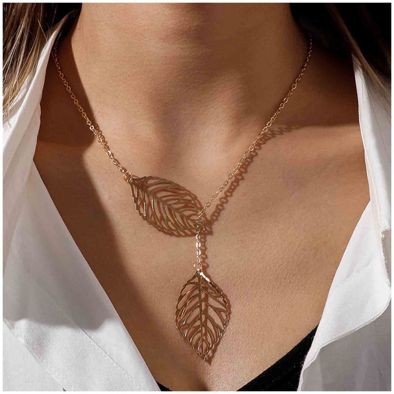 Cimenexe Bohemian Leaf Pendant Necklace Hollow Leaf Y Necklace Leaf Y Drop Choker Necklace Gold Leaf Y Lariat Necklace Choker Jewelry for Women and Girls