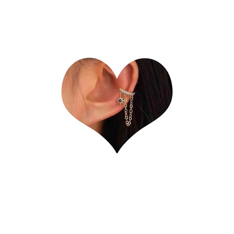 Cimenexe Bohemian Sapphire Star Cuff Earring Gold Crystal Cartilage Chain Earring Blue CZ Starburst Cuff Chain Earring Sapphire Starburst Tassel Chain Earring Jewellery for Women and Girls