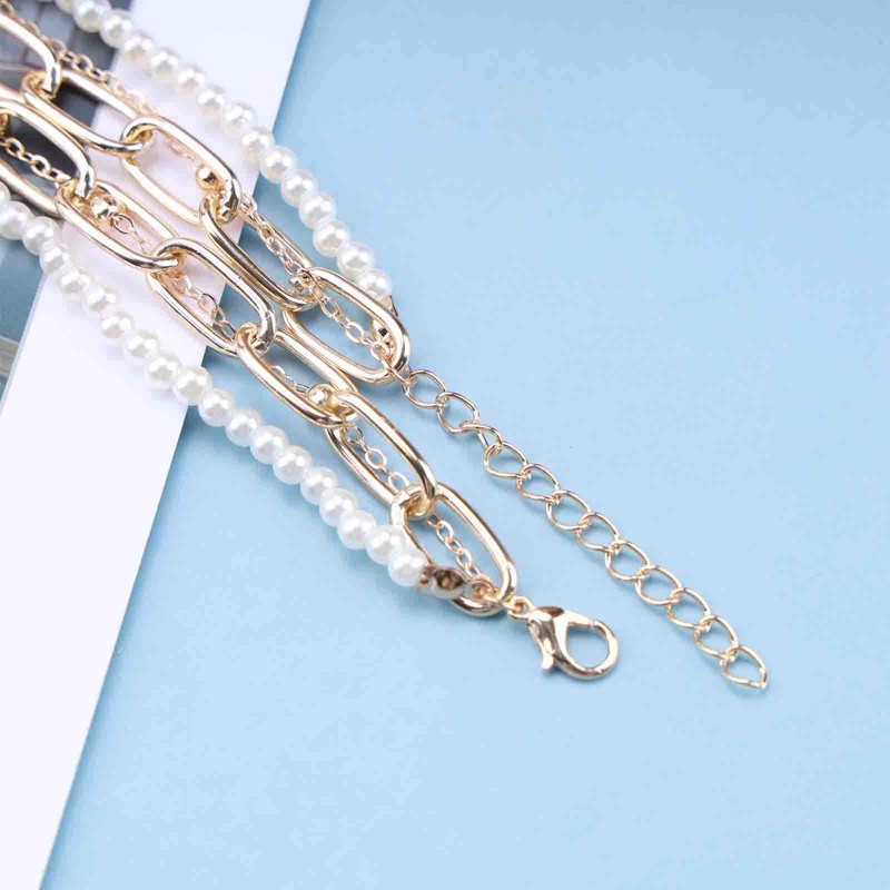 - Gold Pearl Beaded Choker Necklace about 18 inches.The extension chain about 2.1 inches.Suit for most women and girls and you can adjust the necklace length as you like.