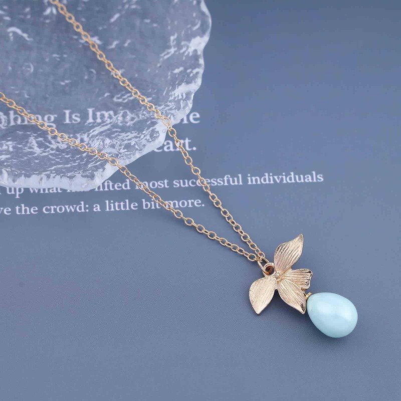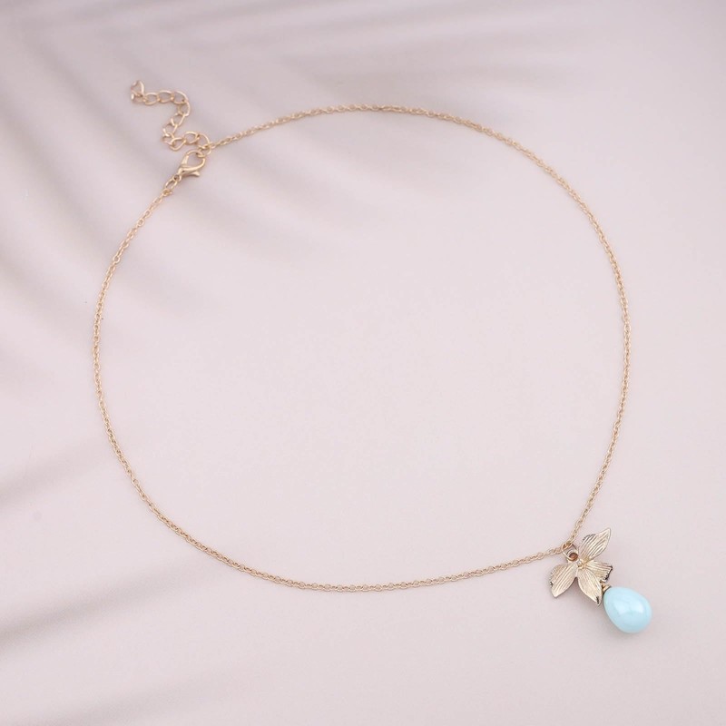 Cimenexe Bohemian Teardrop Gemstone Choker Necklace Gold Flower Leaf Pendant Necklace Oval Gemstone Necklace Small Leaf Gemstone Chain Necklace Jewelry for Women and Girls Gifts