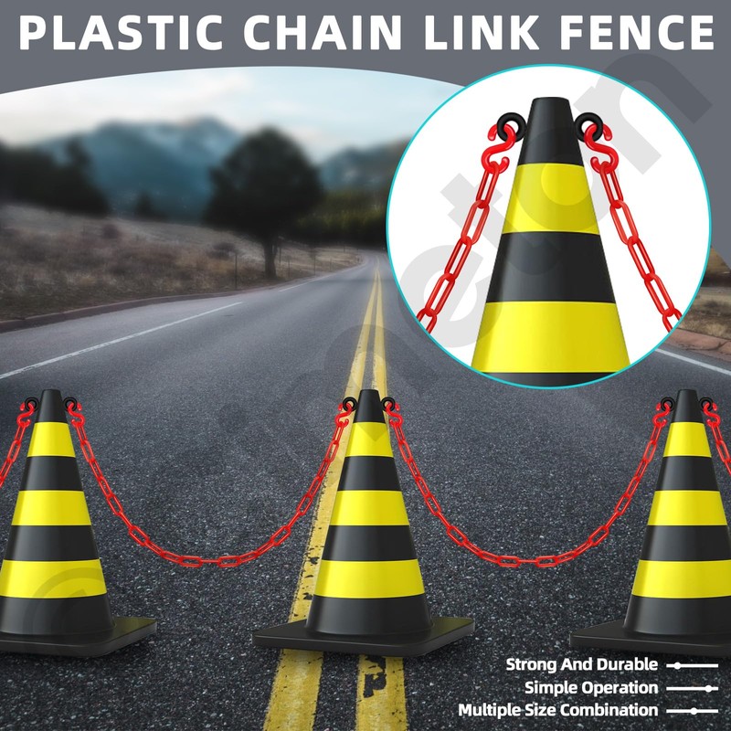 • 🔥【Easy to Use】Plastic chain can be easily secured to posts, ground rods and other support structures. First, hang the hook onto the post. Second, simply roll the chain onto the hook. Plastic chain barrier can be used at large events without worrying about tangles and accidental damage.