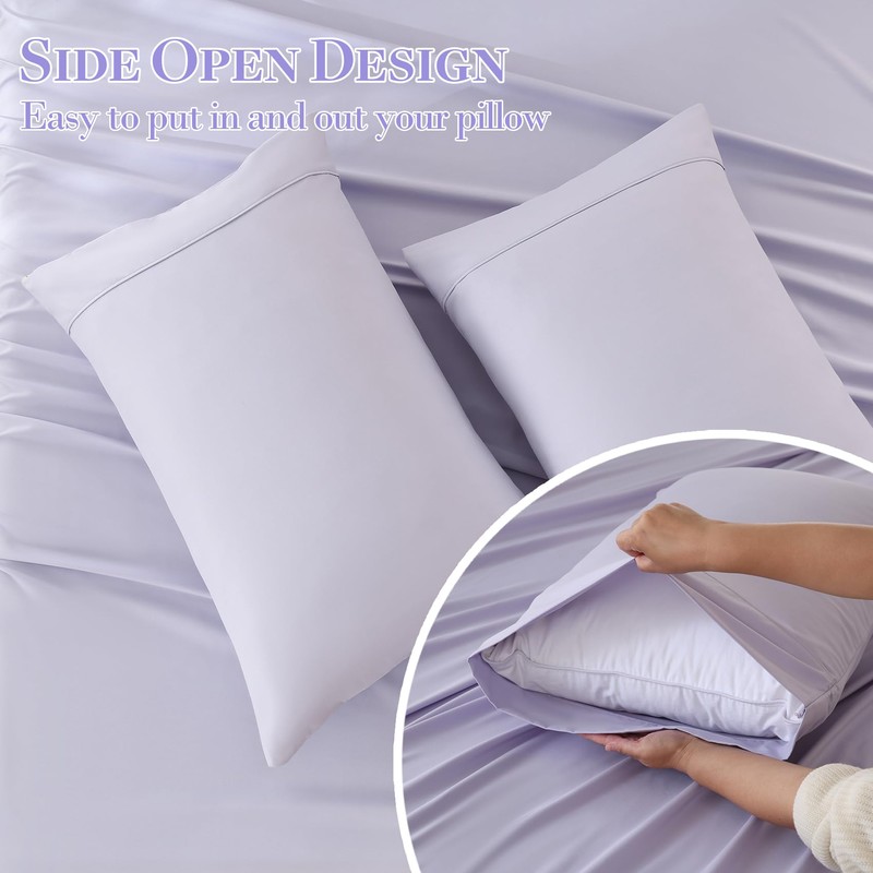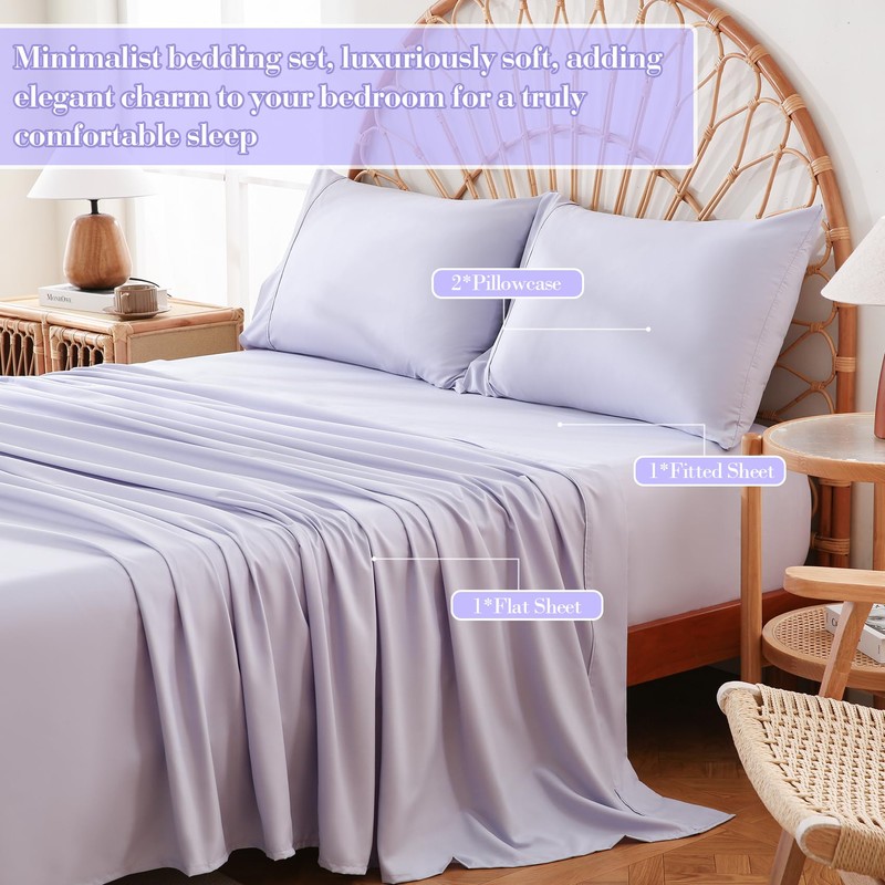 - [Soft and Breathable Microfiber ] Made from premium microfiber, this lavender bed sheets offers a smooth-soft feel, ensuring a comfortable and cozy sleep experience. The breathable fabric keeps you cool in summer and warm in winter