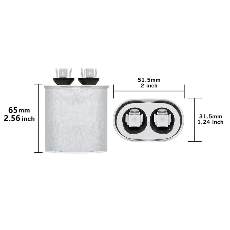 - DESIGN: Oval-shaped CBB65A capacitor with dual connectors, ideal for AC motor and HVAC system applications