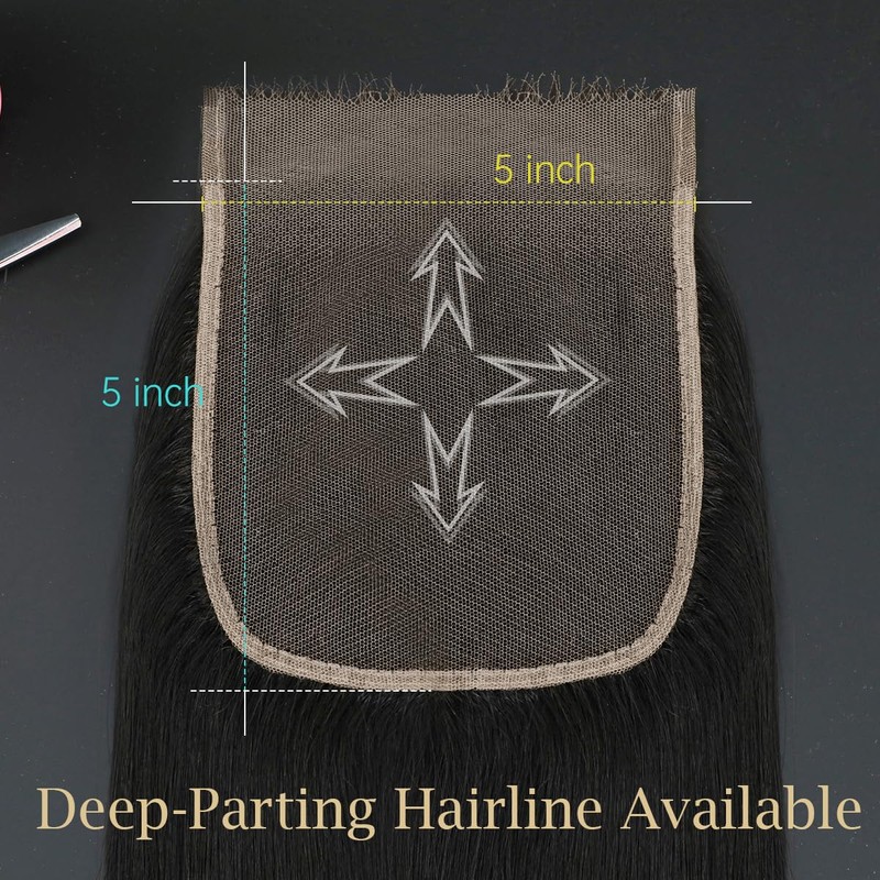 - 5x5 Lace Frontal Closure: Enjoy maximum styling freedom with 5x5 inches of deep parting space. Create middle parts, side parts, or various braided styles effortlessly. The generous parting area allows for multiple styling options to match any occasion.
