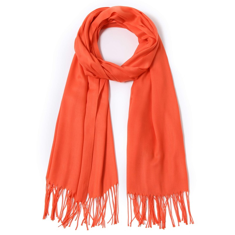 Cindy & Wendy Pashmina Shawls and Wraps Large Scarfs for Women Wedding Party Bridal Long Fashion Solid Shawl Wrap with Fringes (coral)